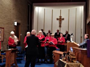 A group of our members plus Rotarians and other Inner Wheel club members get together as a choir each year to rehearse for the Joint Thanet Rotary Carol Service, formed by Chris Hedges of Westgate & Birchington Rotary Club. here is a picture of the choir with Chris to the right and Rev. Peter Russell, who accompanied us on the organ, to the left.